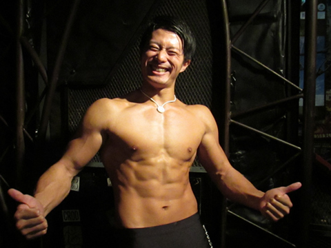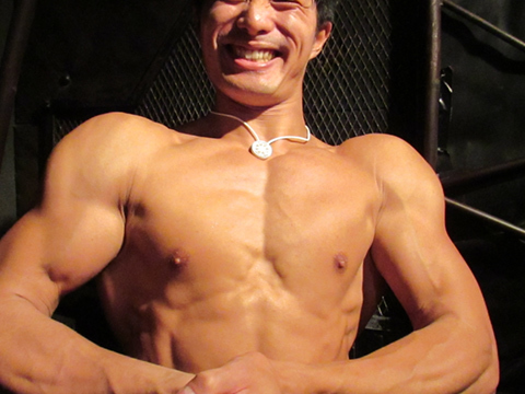 腹筋はもはや6つではなく8つほどでに割れているのではないかと思うほどキレキレです。脇下の盛り上がり方がまさにボディビルダーと感じる筋肉になっています。逆三角形の体のシルエットもとてもきれいです。またコアラ小嵐の爽やかな笑顔と肉体美のギャップがとてもいいですね。