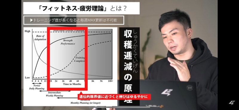 しかし大学に入ると格闘技を始めたので、その補強としてまた筋トレを行うようになったとのことです。そのころはYouTubeなどのトレーニング動画がなかったので図書館で本を借りまくって勉強したと語っていました。この経験が今のYouTubeチャンネルの構成にもつながっているのでしょう。