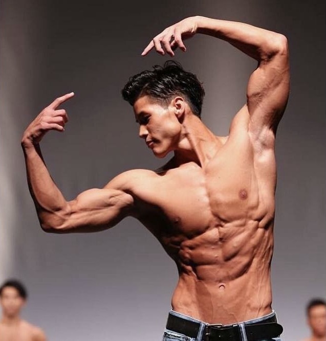 真っすぐに立っているだけでもとてもきれいな体をしています。正面から見ても筋肉の凹凸が分かります。