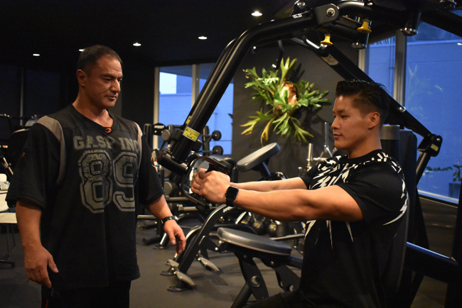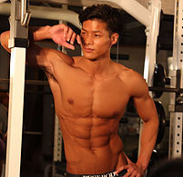 ベストボディジムでトレーニング指導を行ったときの田口純平になります。照明の関係かナチュラルに見える筋肉もまたかっこいいです。また腹斜筋のラインがセクシーに見えます。