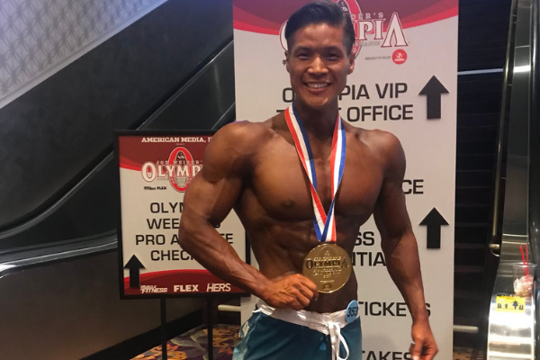 こちらはオリンピアアマチュアラスベガスでクラス別優勝、オーバーオール3位になりIFBBプロ取得という快挙を成し遂げたときの画像です。大会の動画を見てもとてもキレキレかつ肩が立派で、ひとつ抜きんでているようにも見えます。体格に恵まれているだけではなく、ストイックなトレーニングなどの努力が実ったのでしょう。