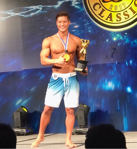 2017年にマカオで開催された、IFBBグローバルクラシックチャンピオンシップのメンズフィジーク175cm以下級でグランプリを取得しています。それだけではなくオーバーオールでも2位入賞という好成績を残しました。日本からは2名出場し、メンズフィジークの180cm以下級に出場していた日本人選手も入賞して同時にとても輝かしい成績を収めました。
