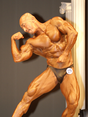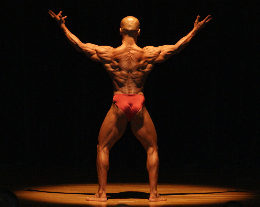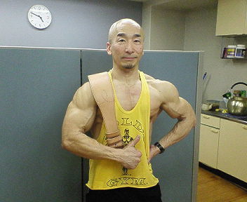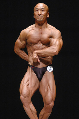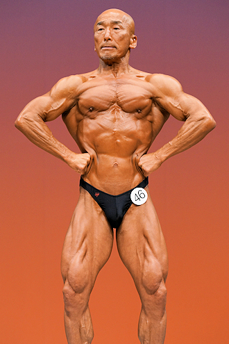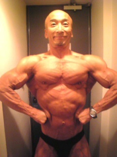 2010年の日本クラス別ボディビル選手権に出場したときの一枚ですが、全身の筋繊維がくっきりと浮き出ていてまるでアニメのキャラです。