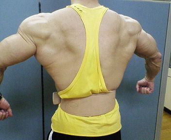 こちらはニコライ堂靴店のトレーニングベルトを装着したときの写真ですが、鍛え上げられた背中の筋肉が芸術的です。