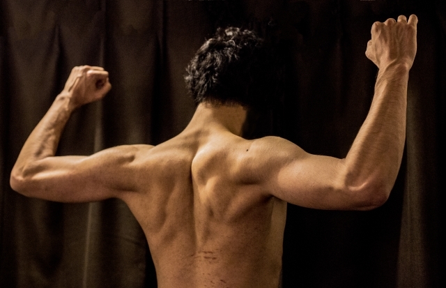 大橋源紀は肩や胸筋もすごいですが、後ろ姿の筋肉も驚くほどの仕上がりになっています。筋肉の盛り上がりで、脊椎が凹んで見えるほどです。