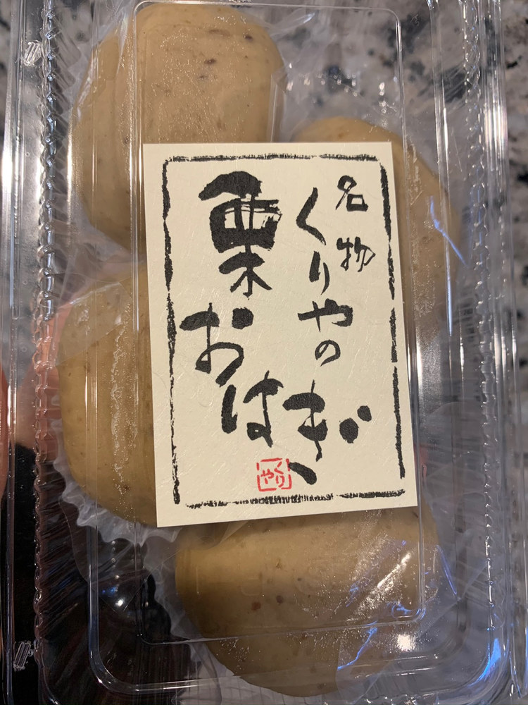 京都府中京区にある【くりや】の『栗おはぎ』は、9~12月上旬までの限定販売のおはぎで、安井友梨は毎年訪れて購入しているほどの究極の栗おはぎです。