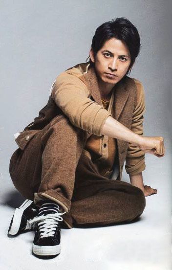 前髪と襟足は長めに残し、無造作に前髪をセンターで分けた岡田准一の大人っぽい印象の髪形です。緩くカールがかかっているので、おしゃれで色気のある髪型に仕上がっています。