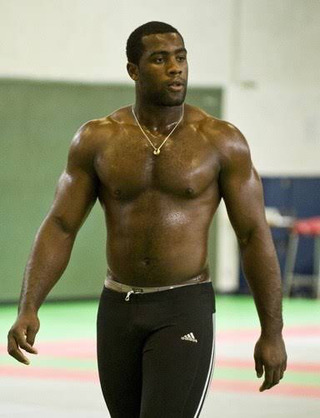 大胸筋と腹筋の付き具合に加えて、肩周りの筋肉もかなり肥大化しているのが分かる画像です。これだけ筋肉が付いていると激しいタックルにも負けることはありませんね。
