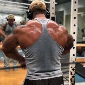 大きな逆三角形の上半身に合わせるタンクトップは、後ろから見ても美しいです。見ているだけでも、逞しさが伝わってきます。