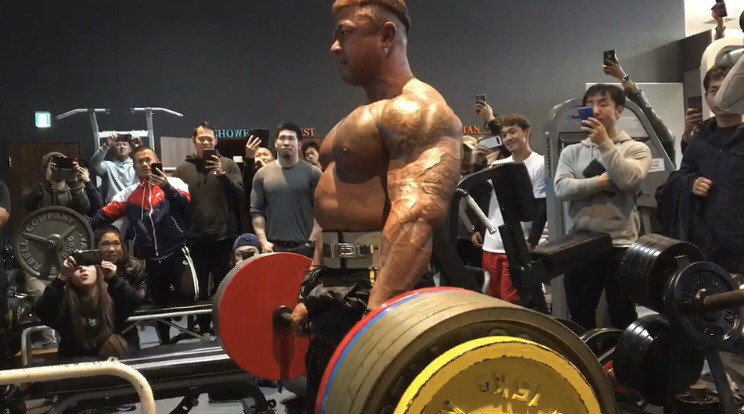 セミナーイベントにて300kgのデッドリフトを公開した時の画像です。300kgの高重量を持ち上げるのも難しいのに、目の前でバーベルを持ち上げデッドリフトを見せてもらい、参加者は大興奮しました。