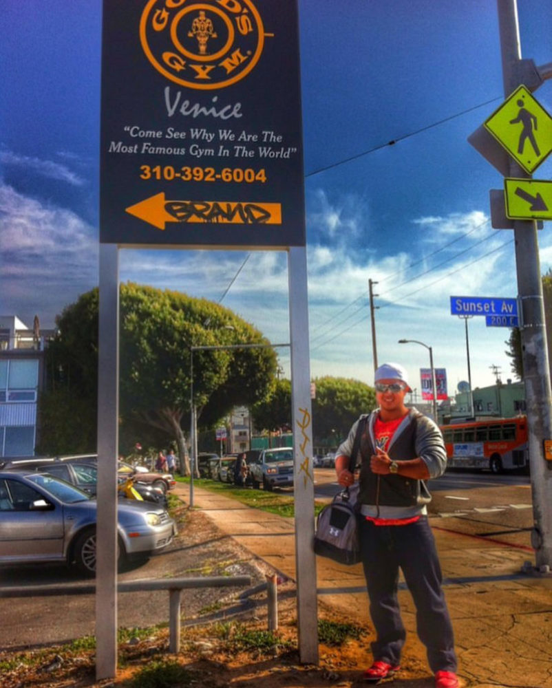アメリカのゴールドジム・ベニスビーチで筋肉留学していた頃の画像です。服を着ている画像になりますが、この頃も体は大きいですが、現在の体よりはやや小さく見えます。