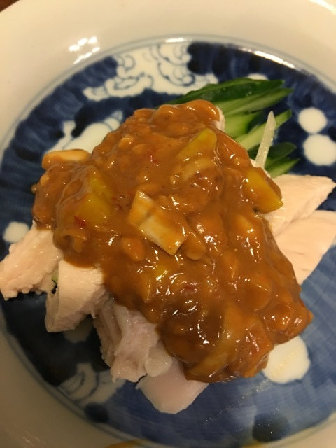 1つ目に紹介するメニューはタンパク質が摂れる食材として定番の、鶏むね肉を使用した棒棒鶏です。鶏むね肉は高タンパク&低脂質なだけでなく、疲労回復効果のあるイミダゾールペプチドが多く含まれているのでダイエットでトレーニングをしているときにおすすめです。パサパサ感が気にならないメニューなのでぜひ試してみてください。