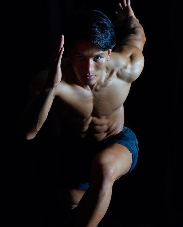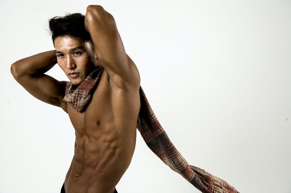 黒光りした肉体が芸術的です。スリムながら筋肉がしっかりとついており、これぞ「細マッチョ」といえるでしょう。