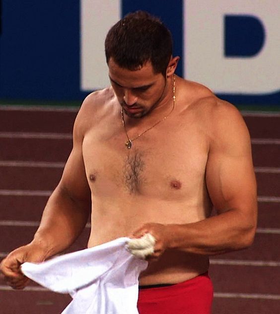 2004年に室伏広治はアテネオリンピックへ出場し、紆余曲折の後優勝者になります。2000年と比べると肩や太ももの筋肉が大きく成長していることが分かります。