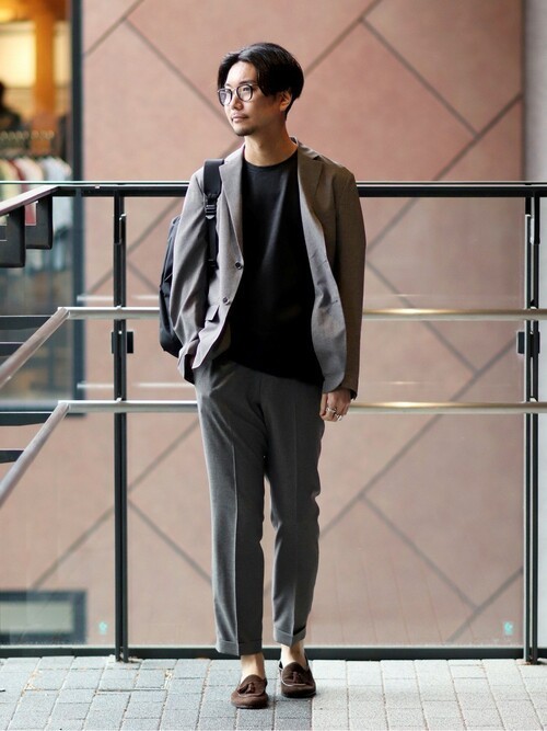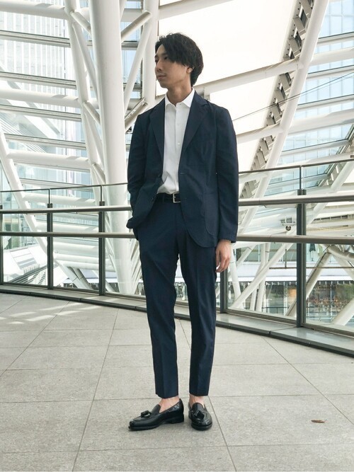 ネイビーのスーツと白シャツのクールビズスタイルに、タッセル付きローファーを合わせて軽やかな着こなしをしています。一般的な革靴では重くなりすぎるので、このように軽快さを出すことはとても効果的です。またこのコーデのようにブラウンではなく黒の靴を合わせれば、カジュアルさを少し抑えることもできます。