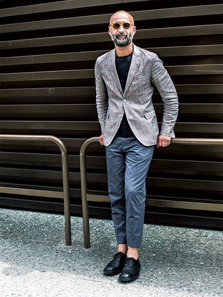 軽快な装いだからこそ、スーツスタイルでもこのような靴でおしゃれが楽しめます。