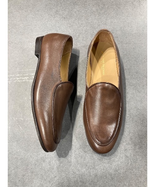 日本のシューズブランドでローファーが有名なハルタの、グロスター別注スウェードローファーです。微起毛のスウェードローファーで、汚れるのを防ぐ効果がある皮革保護加工が施されています。見た目にもとても上品なのでクールビズスタイルにも合わせやすいのが魅力的です。nnカーキとブラックの暗い色の2色展開なので、ビジネスシーンで浮きにくくきれいに馴染んでくれます。またスエードで質感が変わり、コーデに簡単にメリハリをつけることができるので以外と難しいアイテムではありません。ローファーにも重みが欲しいという方におすすめです。n