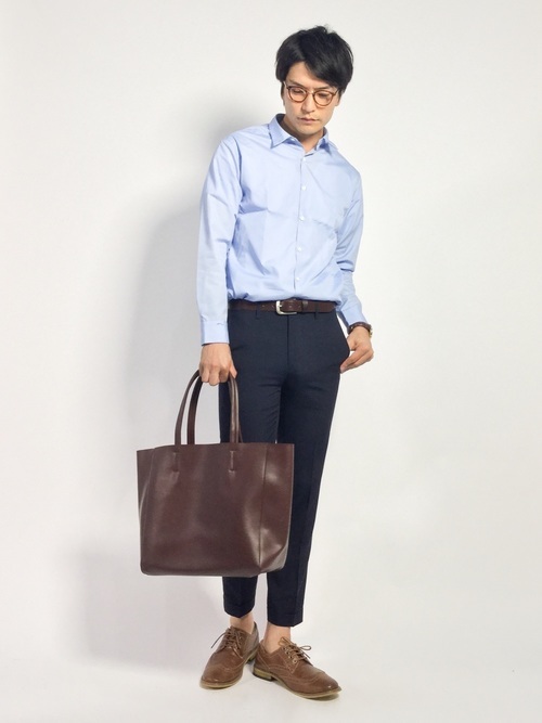 もしこのコーデの靴が黒であれば、ブルー系でまとめた爽やかな着こなしがもったいないです。靴をブラウンにするだけでここまで印象が変わり、浮くことなく馴染んだ着こなしになります。涼し気な見た目を崩さず爽やかに仕上げています。