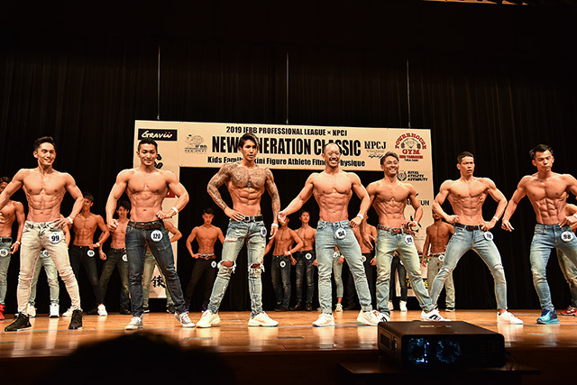 フィジークモデルのジェネレーションクラスでは、年齢別ごとのクラス分けとなります。ハイスクール(高校生)/カレッジ(短大・専門学校・大学)/クラス20(20代)/クラス30(30代)/クラス40(40代)/クラスOver50(50歳以上)の6クラスです。年齢別にすることによって、同年代とさまざまな身長・体重差も含めた選手が集まって競い合える階級となっています。