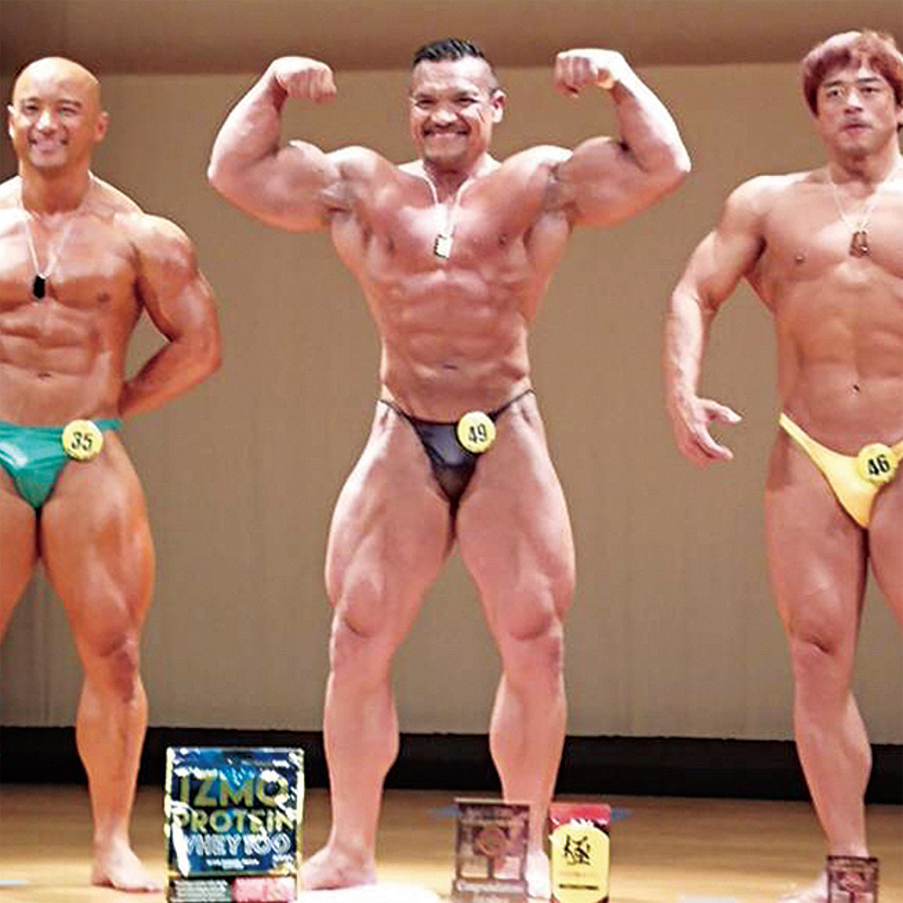 フィジーク有名選手のエドワード加藤は、イケメンでバランスが良い逆三角形の美しい筋肉となっています。フィジークでは下半身の評価は対象とならないため、ボディビルダーのように下半身の筋肉は大きくありません。