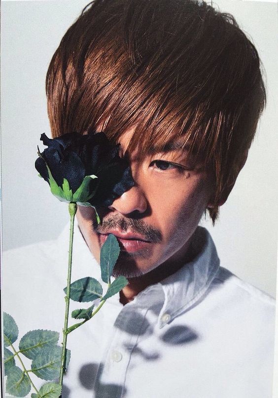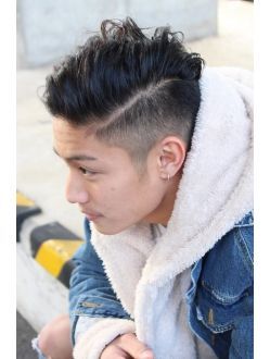 前髪をきっちりサイドに流してワイルドに仕上げたアシメトリーツーブロックです。トップから前髪は長いのでセット次第で爽やかな印象も作れます。森田剛ファンだけでなく、広く男性から支持を集める髪型です。