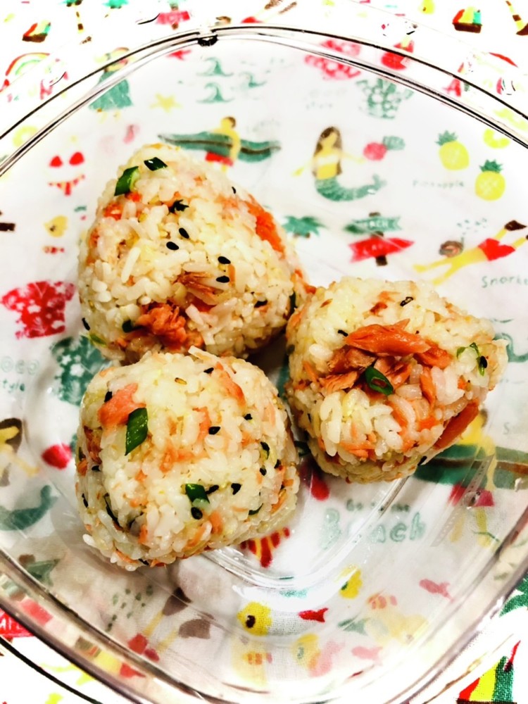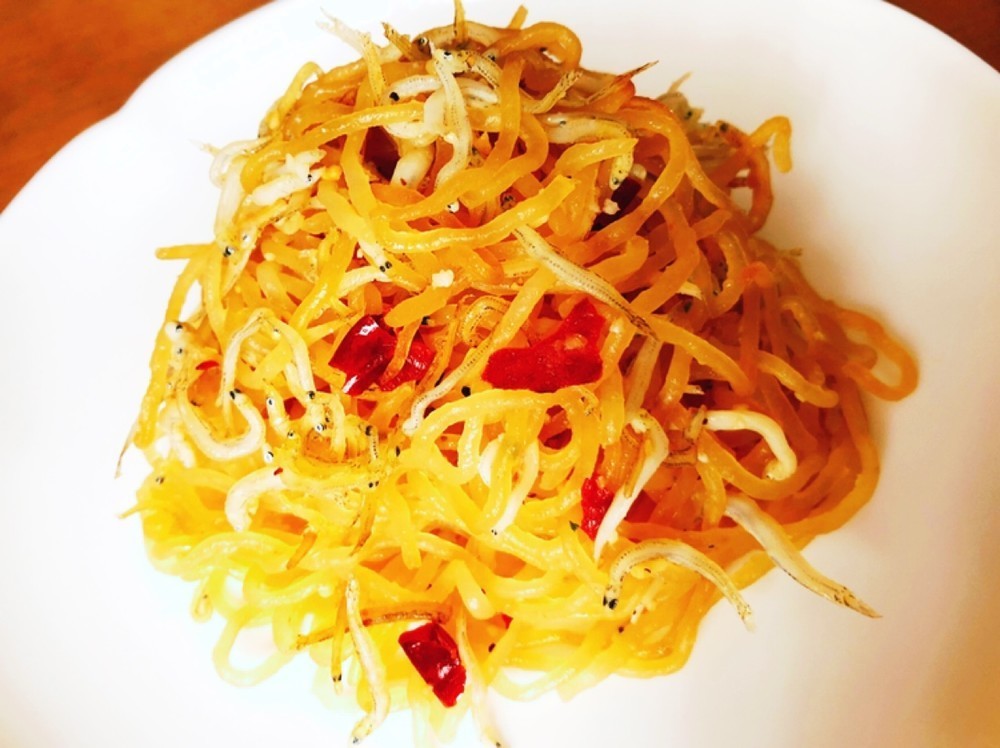 ⑥刻みネギ、ちりめんじゃこをかけて完成