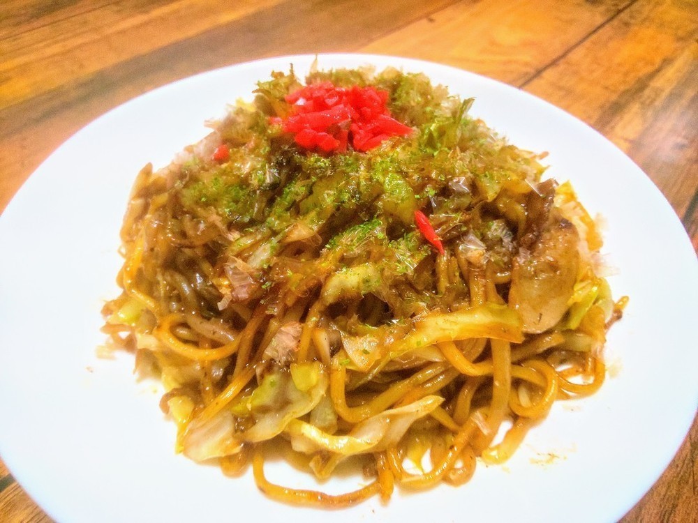 ⑫焼きあがったらソース、マヨネーズ、ネギをかける