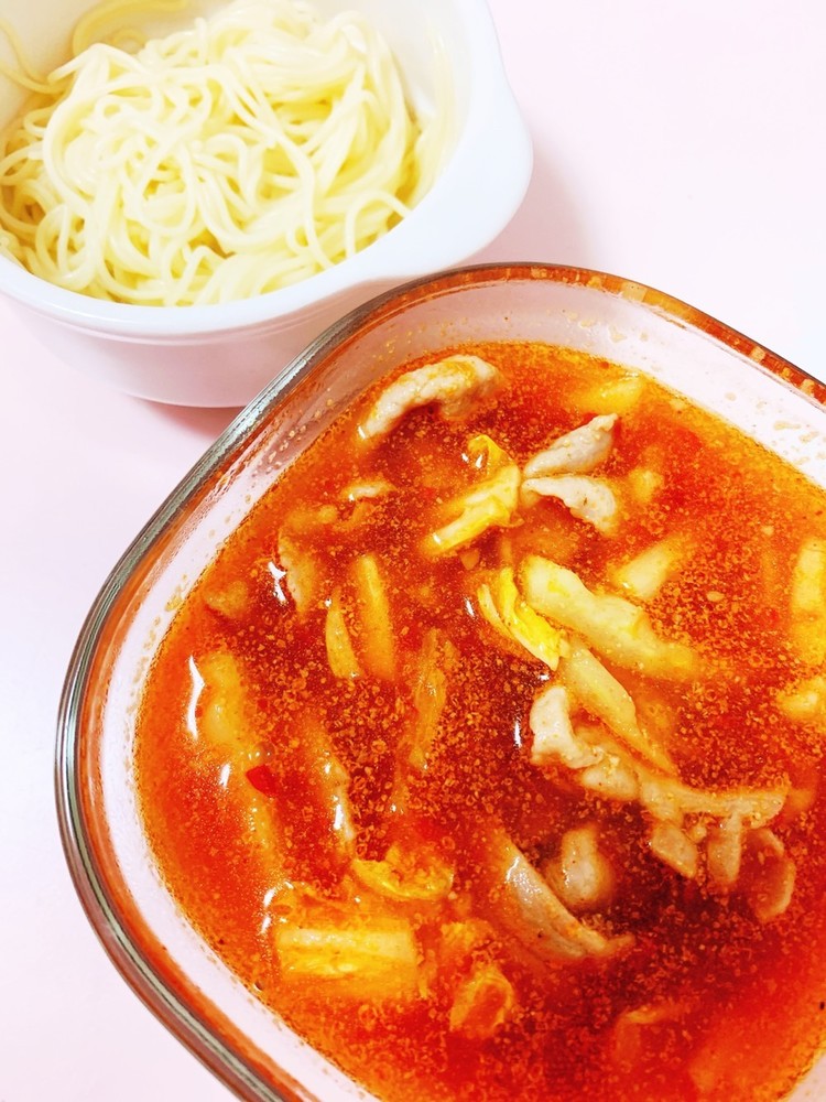 食欲をそそる辛味噌のつけ麺です。市販の低糖質麺はこんにゃくのほか、豆腐でできた商品もあります。好みに合わせて選ぶとよいでしょう。また、ごま油やにんにくの風味で満足感が得られます。糖質制限ダイエット中も積極的に摂取したい豚肉や野菜を一緒に食べられることも特徴です。
