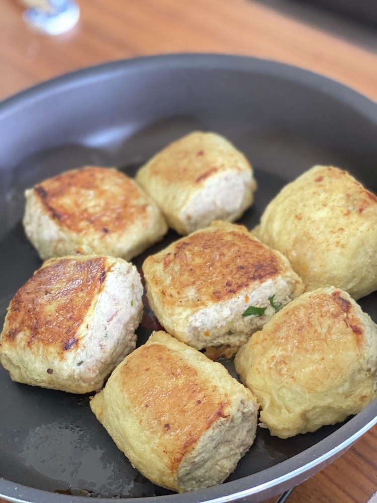 ⑨サラダ油をフライパンで熱し、⑧を焼く