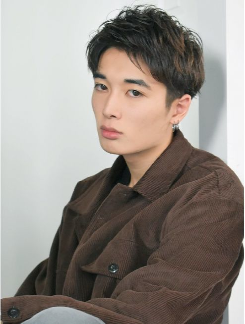 ナチュラルパーマで毛束間と毛先の動きを意識したヘアスタイルになっています。短髪でも、サイドをレイヤーカットすることでメリハリがつきます。