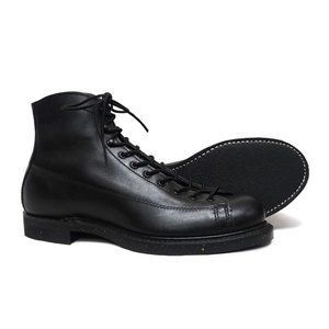 こちらのブーツはレースワークショートブーツで、ワークブーツでありながらすっきりとしたラストを使用しているので、足元をすっきりと演出したいときにもおすすめの一足です。アッパーには牛革を使用しており、履いていくうちにどんどん足になじんでいくのが特徴です。長年履きこなして、靴を育てたい方にも向いているでしょう。nnまた、側面にファスナーがついているのも大きな特徴です。これによって着脱もしやすくなっているので、履きやすさにこだわる方にぴったりです。また、ショートブーツなので季節を問わず着用することができます。オールシーズンで履きこなして、上手にメンズファッションに取り入れてみてください。