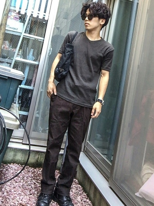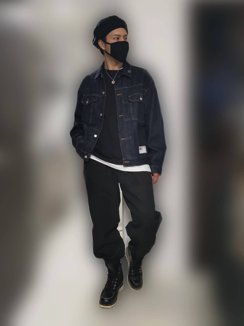 GUとUNIQLOのアイテムを活用した、黒のアイテムでまとめたファッションです。着用しているブーツのブランドであるセダークレストは、近年ではカジュアルシューズのイメージも強いのですが、元々はワークブーツのブランドとして知られています。