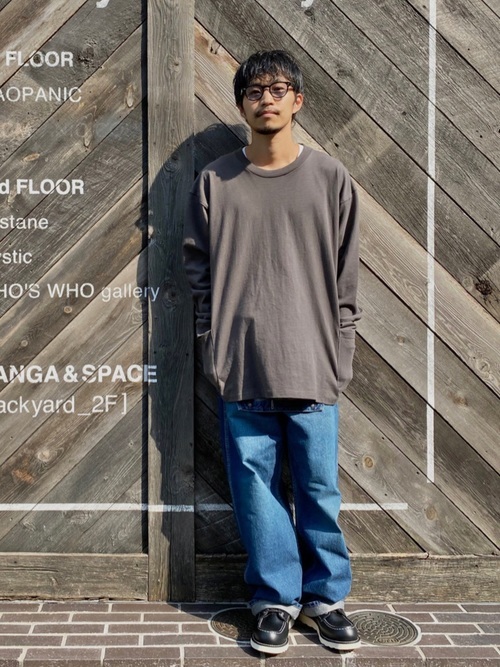 ビッグTやワイドパンツを組み合わせた、ゆったりしたシルエットが特徴の秋コーデです。レッドウィングのブーツは黒を選んでいるので、コーディネート全体が足元からきゅっと引き締まった印象になっています。