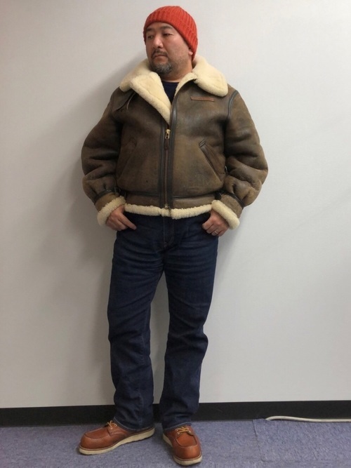 暖かそうなブルゾンを着こなした、寒い日でも安心の冬コーデです。足元にはレッドウィングのブラウンのブーツを合わせており、きちんと感やフォーマル感があるのも特徴でしょう。