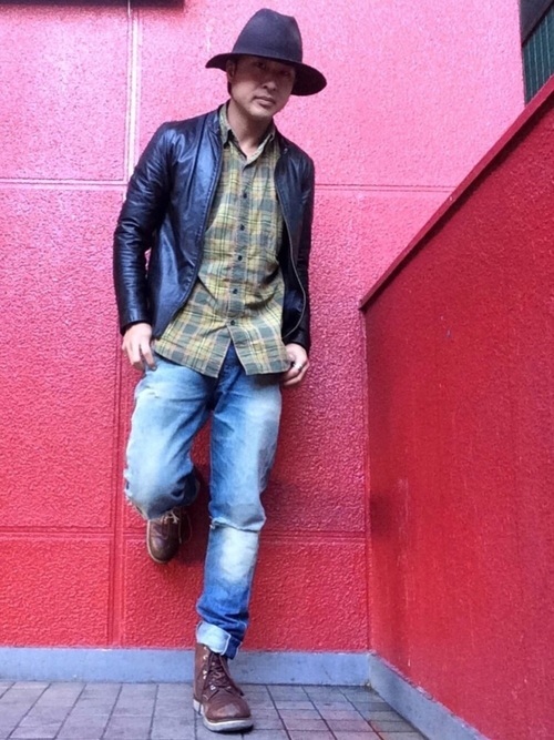 定番のアメカジスタイルで、ワークブーツをかっこよく着こなしたファッションとなっています。レザー×チェックシャツ×ジーパンというシンプルながら大人の雰囲気を感じられる着こなしで、カジュアルな中にも清潔感が出ています。