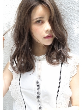 シースルーバングの前髪と、ゆるふわパーマが絶妙のバランスの髪型です。シースルーバングを加えるだけで、大人可愛さが加わります。