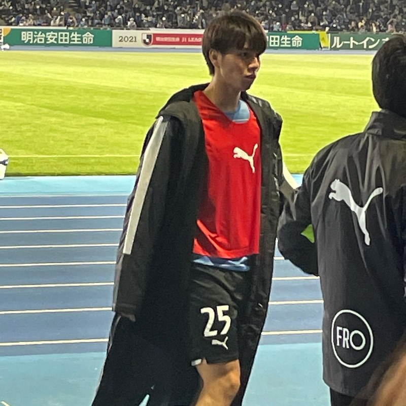 田中碧は黒がよく似合うと感じる画像です。2021年川崎フロンターレで活躍している頃の写真で、まるでモデルのような1枚となっています。長身であることから、ロングコートがサマになっています。ファッション雑誌から飛び出してきたような画像です。