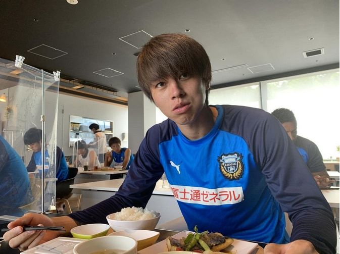 2020年夏頃の田中碧です。引き締まった顔が印象的で、整った目鼻立ちがよくわかる画像となっています。カメラ目線がまるでアイドルのような映り方をしています。たしかに、イケメンです。