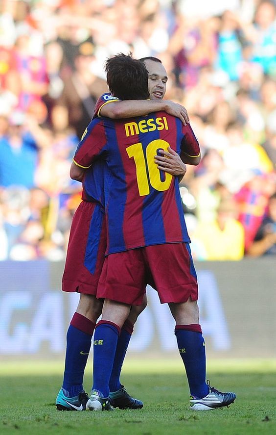 出典:https://www.pinterest.jp/pin/641411171909923518/2010年アルゼンチンとの試合で、ゴールを決めたイニエスタを祝福するメッシとのシーンです。