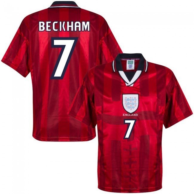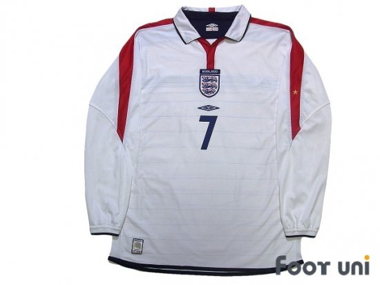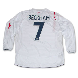 2004年、ユーロ2004にイングランド代表として出場した時のユニフォームです。白地に赤いラインがおしゃれ。背番号はこの時も7番でした。現在は新品は購入することが難しく、中古品を探すしかなさそうです。