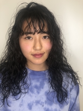 ワンランク上のヘアスタイルにしたい方は、こちらの方のように前髪にもパーマをかけてセンター分けにしてみましょう。