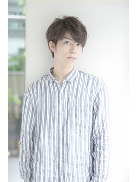 トップにボリュームを持たせ、前髪をふんわりとサイドに流したヘアスタイルです。爽やかな印象のモテヘアになります。