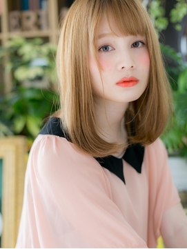 髪色も髪型のシルエットも愛沢えみりとそっくりなワンレンミディアムです。毛先のカールとハイトーンの髪色によって、まるで人形のようにかわいい仕上がりに。