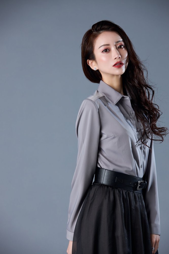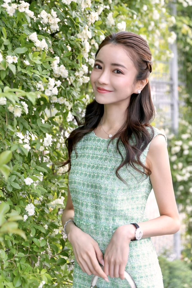 ハーフアップ部分は頭のシルエットが出るようにピシッとまとめるのがポイント。前髪はシースルースタイルでふんわりさせているので、柔らかい印象に仕上がっていますね。