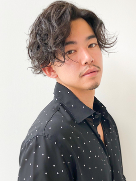 マンバンツーブロックはロングストレートでもよいですが、パーマでアレンジすることで動きのあるヘアスタイルに変身しますよ。