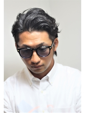 ロングツーブロック無造作パーマ×黒髪オールバック