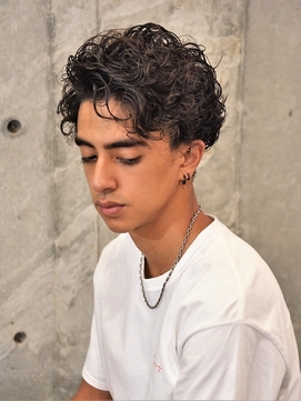 サイドと後ろをツーブロックに刈り上げ、トップ、前髪はアレンジしやすいよう長めに残してもらいましょう。重くなりすぎないよう全体を軽くすいてもらうのもポイントですよ。髪に動きをだすため、スパイラルパーマをかけましょう。