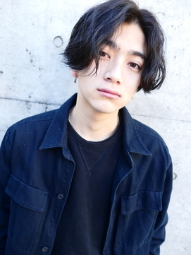 サイドはソフトなツーブロックに、前髪は耳に掛けれる長さに整え、後ろは肩の上あたりの長さにカットしてもらいましょう。髪の中間から毛先に向かって無造作カールが作れるよう、太めのロッドでパーマをかけてくださいね。
