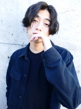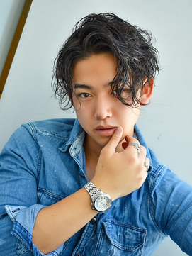 サイドはしっかりと刈り上げツーブロックにし、トップのボリュームを抑えてもらいましょう。無造作ヘアが作れるよう、全体に緩ウェーブのパーマをあててもらい、分け目は七三に作ってもらってくださいね。