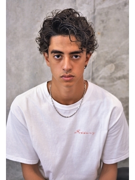 緩いウェーブの無造作パーマとオールバックのアレンジは、ワイルドさがでるので男らしさをだしたい方におすすめです。特に10代、20代の男性が大人感をだすのにぴったりのヘアスタイルとなっていますよ。